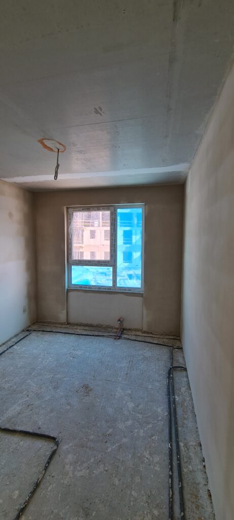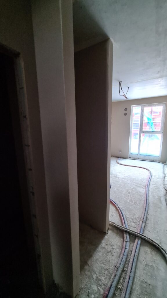 Kolejny etap inwestycji na wrocławskim Jagodnie. Tynki maszynowe gipsowe w standardzie pod malowanie.