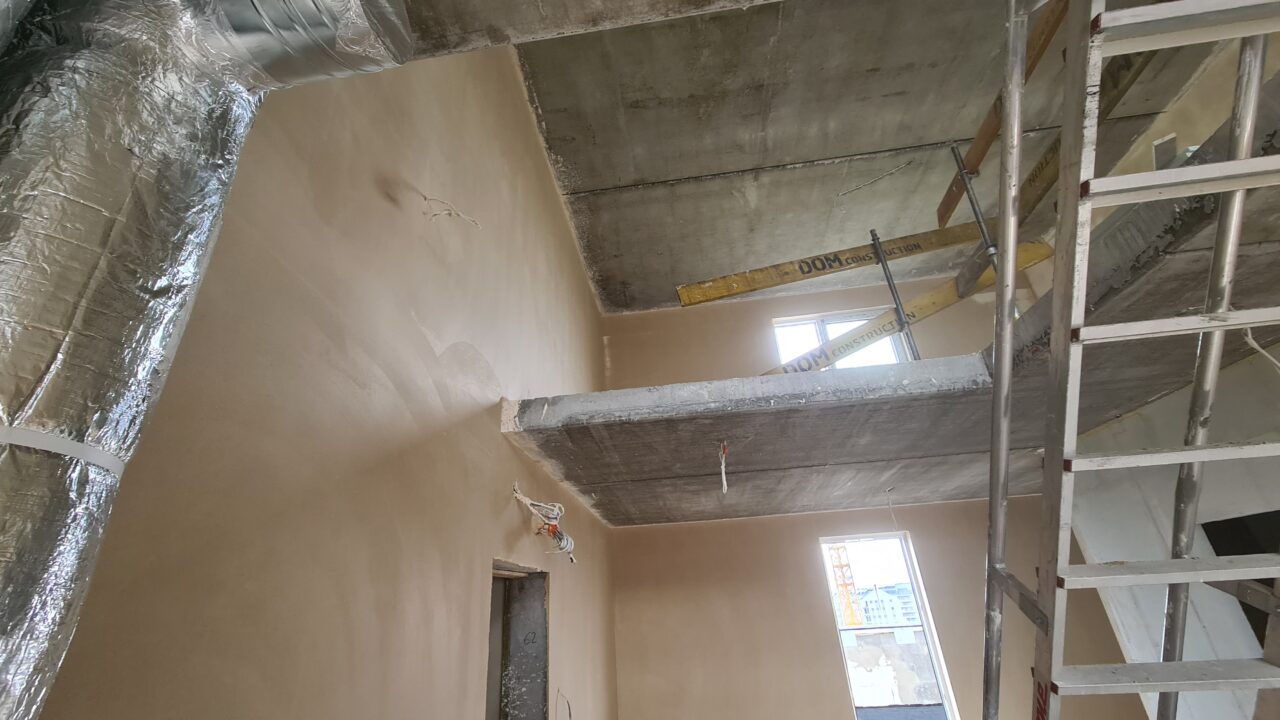 Zadanie polegało na wykonaniu tynków maszynowych gipsowych w 50 mieszkaniach w inwestycji firmy Dom Development na wrocławskim Jagodnie.