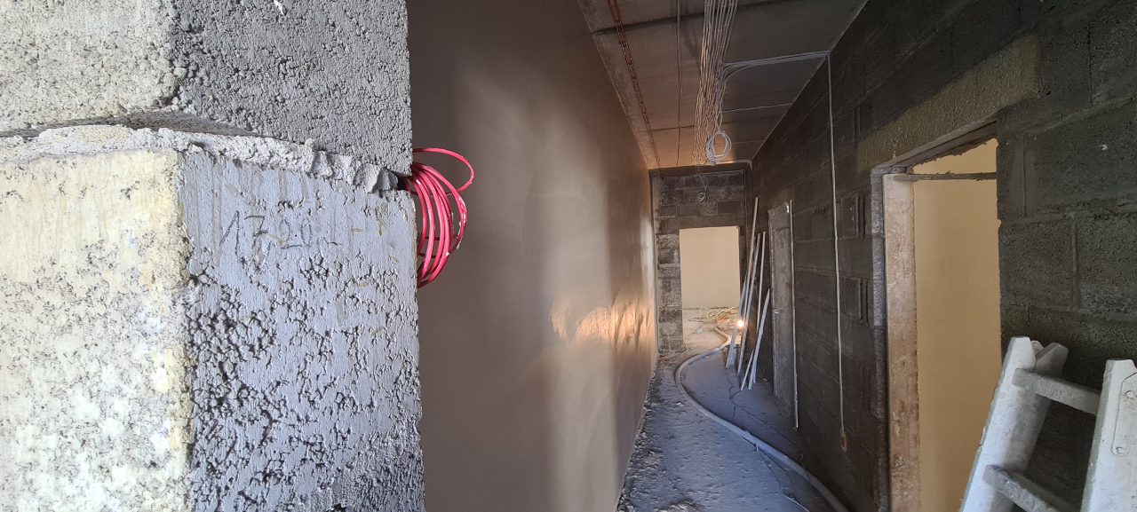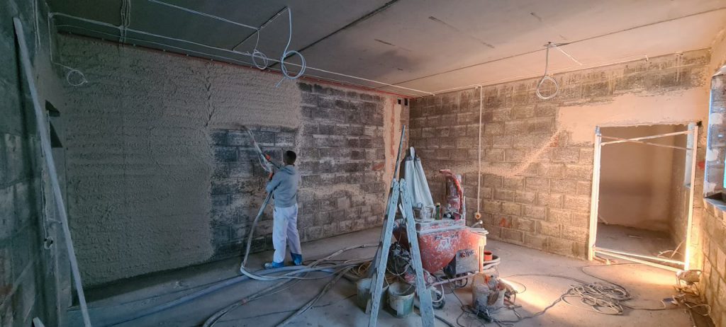 Tynki gipsowe maszynowe w nowo budowanym biurowcu oraz zapleczu technicznym producenta prefabrykatów betonowych firmy Termat.