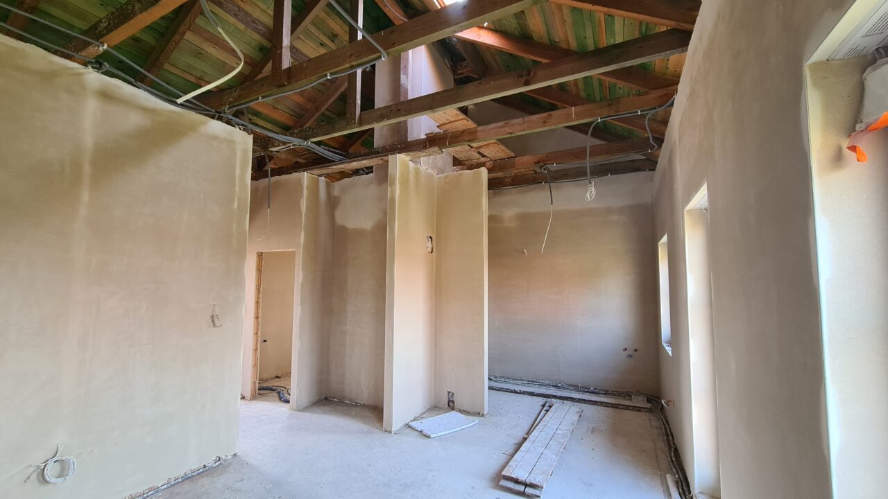 Tynki gipsowe wykonane w domu jednorodzinnym.